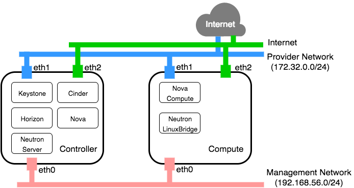 이 포스트에서는 Install Guide 에서 제시하는 네트워크 구성도에 대한 이해와, 그것이 내부적으로 어떻게 구성되는지 명령어단위로 하나하나 분석하면서 알아보도록 하겠습니다.